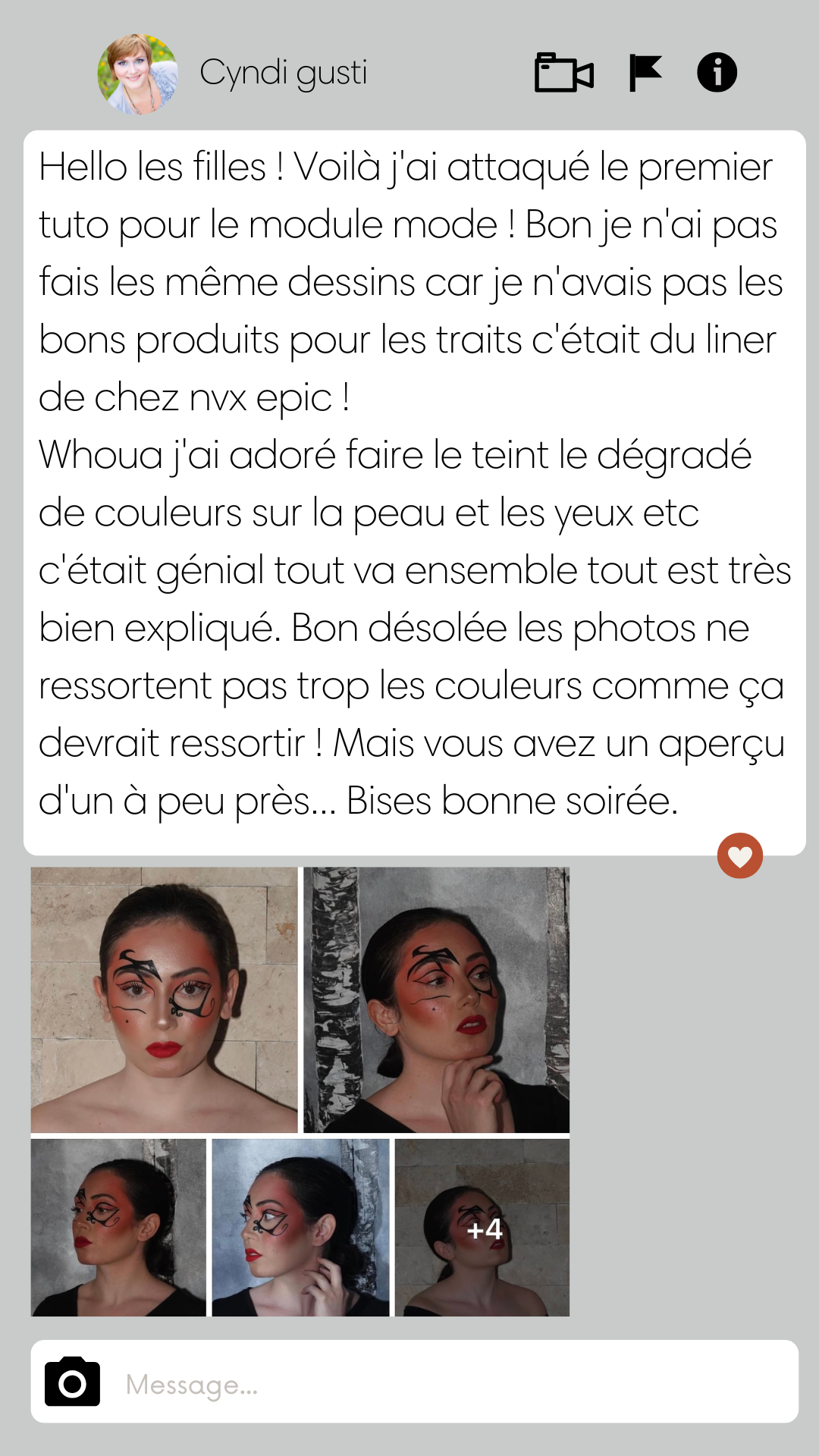The trainer and professional make-up artist supervises her students and encourages them in their training but also in their profession.
